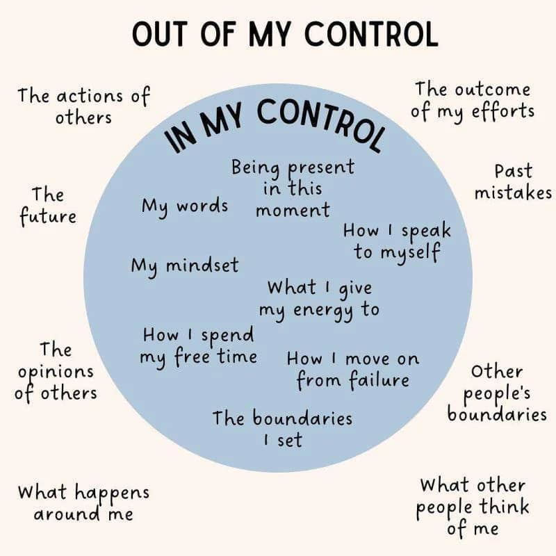 And still... How we act, how we choose to move forward with the circumstances in our lives, the words we choose to say to ourselves and others, the positive or negative things that we choose to focus on, our boundaries, and how we allow people to treat us (or not), the energy we choose to bring into our life, and the thoughts and beliefs we choose to entertain, all of those are still within our control. So, when other people try to make you feel a certain way based on their own perception, their judgment, or their reality, remind yourself that it's not your responsibility to fix other people's lives or problems. And while you cannot control other people's actions or the opinions they have about you, how you move forward, what you focus on, and how you think about and talk to yourself... That is still within your control, no matter what anyone else says or thinks. And when in doubt, focus on things that matter to you, the things that you believe are truly important, AND the things that are still within your sphere of control to change or influence. Sometimes that's all that we can do... And oftentimes, that's more than enough. Locus of ControlBecause I cannot talk about what is yours to control, without talking about your locus of control, let's touch on this topic for a moment. Whether you believe that your actions and your choices determine the outcomes you get in life, or not, changes how you behave and what you think is possible for your life. Locus of control is a psychological concept developed by Julian Rotter in 1954 that represents the degree to which you believe you impact the outcomes you get in life. It's basically a belief system about how you interpret both setbacks and successes, and how you decide to move forward from them.
